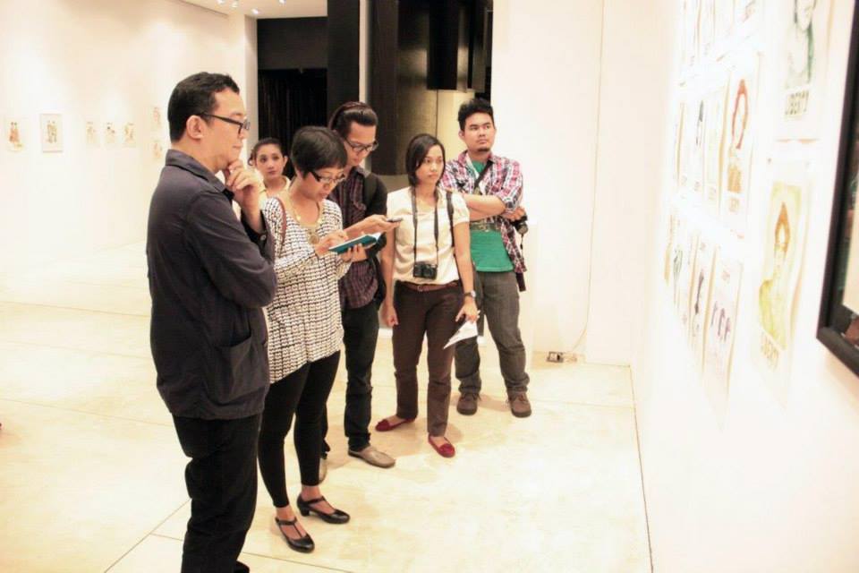 ‘Liberty, Femina, Keluarga’ consists of a series of fourty- six small format water color paintings by Peruvian artist Cecilia Collantes. Cecilia’s work is often inspired by the exploration of concepts and imagery used in media and advertising and how they influence the development of an individual’s image and identity. In ‘Liberty, Femina, Keluarga’, she explores the representation of Indonesian women in the media through an in-depth study of three Indonesian magazine covers selected from issues published in the 50’s, 60’s and 70’s. Each selected magazine cover is reproduced through the artist’s eyes in a series of paintings exploring the link between the titleof the magazine versus the image chosen for the front cover. In Liberty’, Cecilia explores the concept of freedom; in ‘Femina’, femininity and in ‘Keluarga’, family.