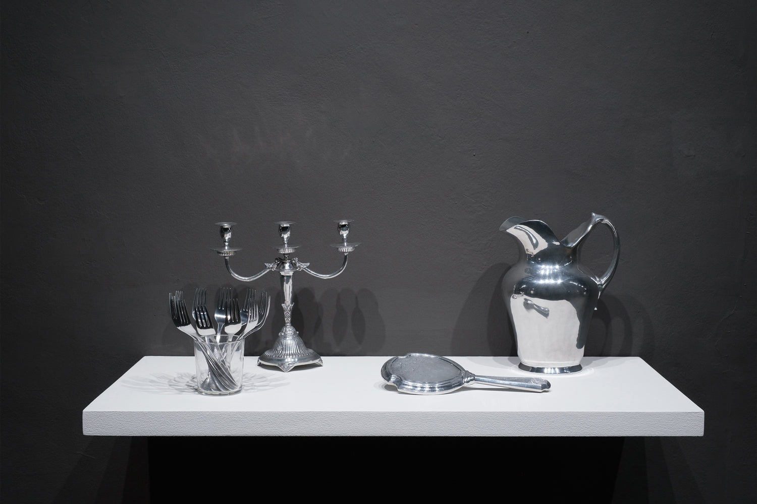 The appearance of Marco Cassani’s recent drawing series is free from narrative elements. It is, at the same time, sensual and monumental of character. The drawings in Thousand Years in Silence can be considered the shadows of his existing still life works. He drew them literally based on memories of the ideas of those particular art objects. Thus, Marco Cassani, as it were, is attempting to freeze the silence in the void of his existence as an artist; the outsider offering possible common value carried by domestic objects that form the significant subject in his artistic practice.