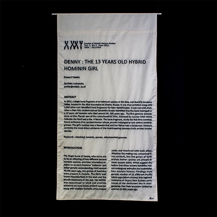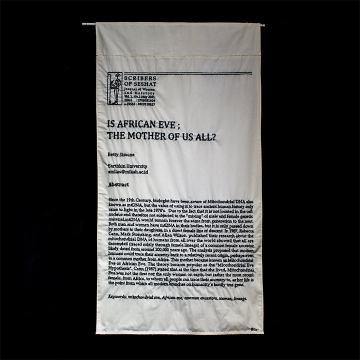 Salima Hakim (born in Jakarta, 1978) is an alumnus of the Master of Art History postgraduate program at the University of Indonesia (UI). Currently, she works as a practitioner and lecturer of art history study in Universitas Multimedia Nusantara, Tangerang. She believed that art is a form of escapism that will enable the telling of complicated stories to be explained literally. She works a lot with embroidery and hand sewing media with exploratory narratives about historical deconstruction in a gender perspective. In Biennale Jogja Equator #6 2021, Salima continues the development of her previously initiated project, ‘HERStory’ from in 2019.